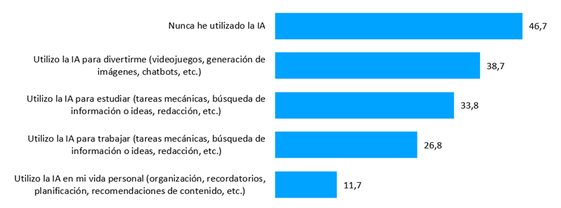 Gráfico 1. Usos de la IA entre la juventud. (%)
